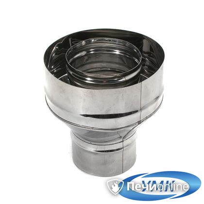 Элемент дымохода старт-сэндвич УМК предназначен для перехода от одностенного участка дымохода к двустенному (сэндвич-трубе), тип соединения папа-мама, диаметр 140/200мм.